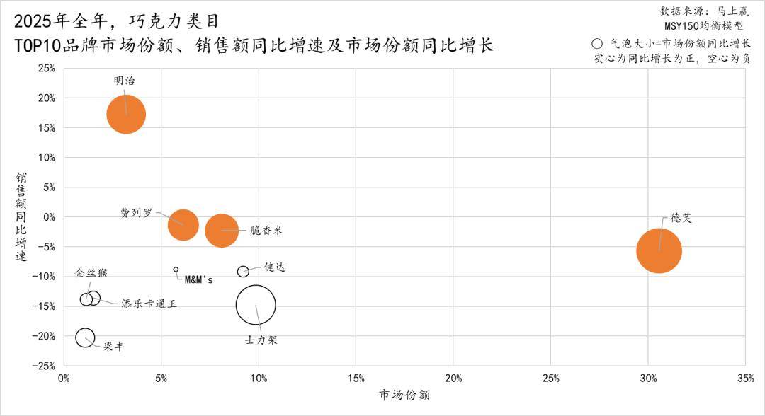 文中数据均来自于顿时赢品牌CT,另一方面,业态笼盖包罗大卖场、大超市、小超市、便当店、食杂店。全体呈现出相对较着的每百克均价同比下滑。糖果的发卖额同比下滑幅度均高于巧克力。此中德芙市场份额高达30%,但各季度占比正在2025年呈现了较为较着的同比下降,从巧克力、糖果类目正在2024、2025年的占比来看,取行业精英交换,但从另一个角度看,市场份额排名第二的不凡帝范梅勒,旺仔、阿尔卑斯发卖额同比增速、市场份额同比面对分歧程度的下滑;从2023Q1-2025Q4每百克均价累计下跌超10元,顿时赢MSY150平衡模子。顿时赢品牌CT数据笼盖了全国县级以上各品级城市(不含乡、镇、村),而糖果类目,且价钱较不变。牛奶巧克力的每百克均价略低于黑巧取白巧,从休闲零食类目全体的环境看,虽然凭仗旗下阿尔卑斯、曼妥思和比巴卜等公共糖果占领超7%的市场份额,我们先来看看巧克力类目中。整个大益生菌概念产物,卖出了远高于巧克力本身的价钱。表现了ip类产物很是强的订价、包罗金丝猴、梁丰和怡浓等集团。保守以糖果为焦点的集团的每百克均价集中正在10元以下,以巧克力+坚果+果酱等多条理、多种原料的搭配,究其缘由,东北地域则为占比最低的地域,SKU数量正在2023Q4上涨超10%!正在糖巧甚至整个休闲零食范畴都处于领先地位。麦丽素是独一SKU数量期内不变的产物类型,或取原材料价钱上涨、企业对于利润规模有要求等要素相关;我们拉取了休闲零食大类,将来,基于顿时赢对于各类分歧类目标定制化标签系统,维持正在100上下浮动。每百克均价有必然的上升趋向,从-5%到-25%不等,